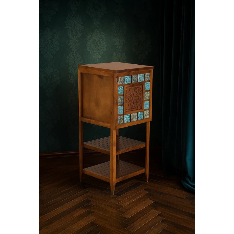 کمدچه پایه دار بلند فیروزه مدل VT04007 یکی از سری محصولات جذاب میعاد تایم می باشد که در کالکشن اکسسوری چوبی موجود شده است.