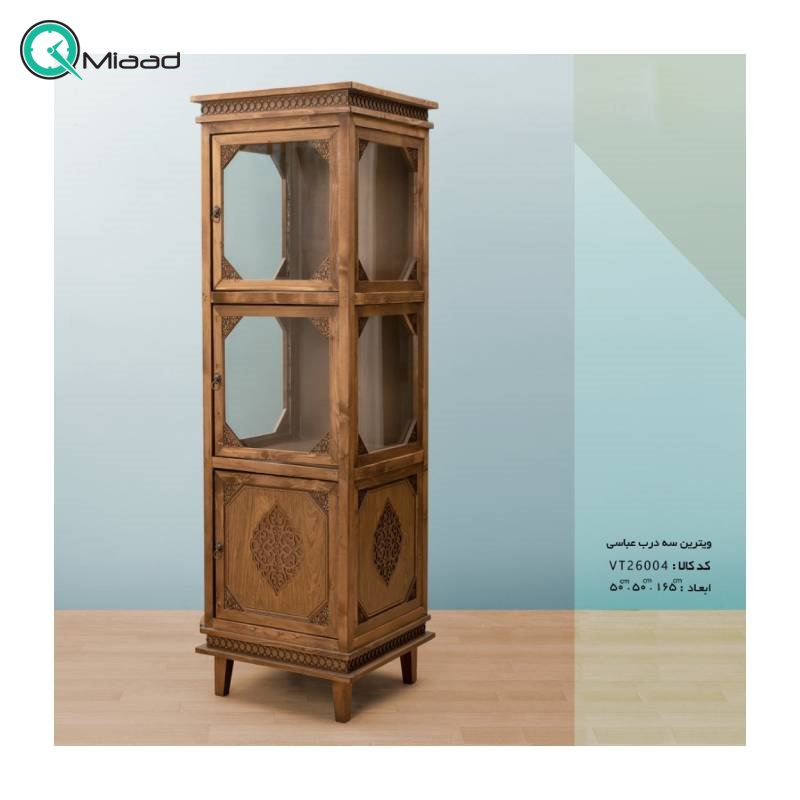 ویترین چوبی سه درب عباسی VT26004 یکی از سری محصولات جذاب میعاد تایم می باشد که در کالکشن اکسسوری چوبی موجود شده است.