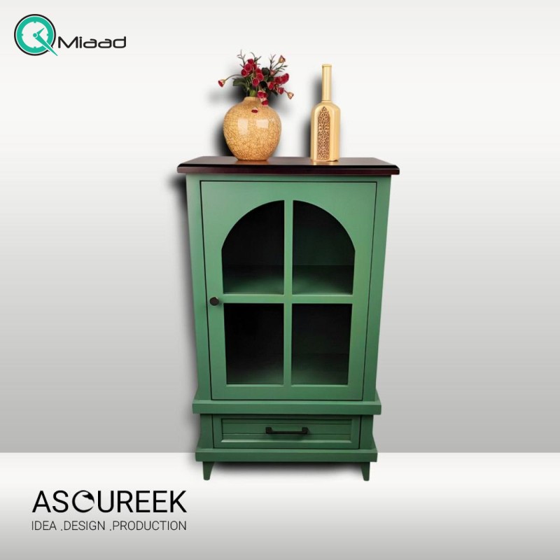 ویترین قوس پنجره مدل s1 با کد VT26008، ویترین قوس پنجره با طراحی مینیمال و ساده، رنگ سبز