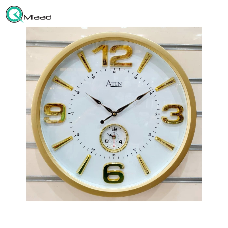ساعت دیواری آتن دو زمانه رنگ طلایی ساعت دیواری فروشگاه میعاد تایم می باشد.