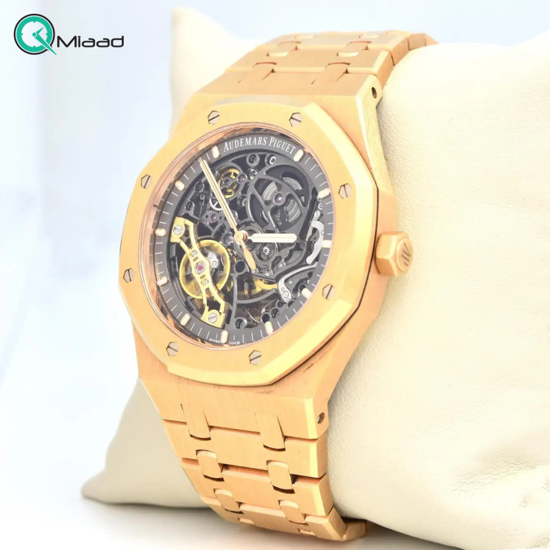 ساعت مچی مردانه اودمار پیگه با رنگ طلایی خودش یک محصول جدید میعاد تایم می باشد که امروز برای شما در بخش ساعت مچی موجود کرده ایم. هنگامی که جولز لوئیس اودمار پیگه و ادوارد پیگه به ترتیب در سن 23 و 21 سالگی در دانشگاه با هم آشنا شدند، آنها Audemars Piguet، یکی از تولیدکنندگان برجسته ساعت های لوکس سوئیسی را در سال 1875 تأسیس کردند. و پس از فارغ التحصیلی در صنعت ساعت سازی شروع به همکاری کردند. Piguet بدنه ساعت را ساخت، در حالی که Audemar مسئول ساخت موتور و سایر قطعات و اجزای اصلی بود. آنها در راهاندازی کسبوکاری که بعداً به اودمار پیگه تبدیل شد، موفق بودند. امروز هم نسخه های کپی یک از ساعت های این برند را برای شما موجود کرده ایم.