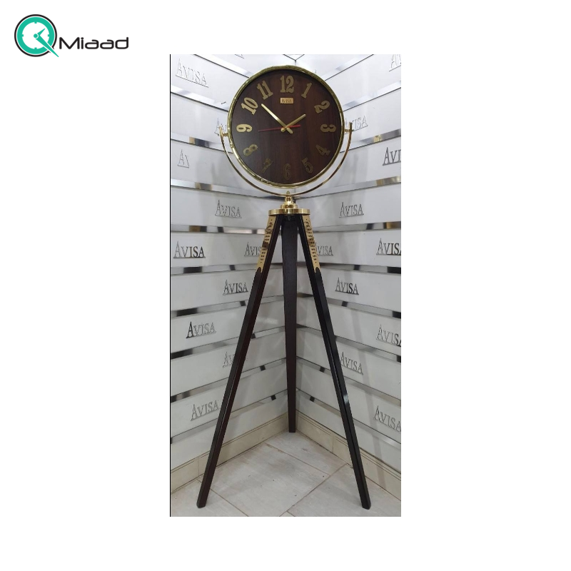این ساعت ایستاده، دارای سه پایه است که می تواند کنار هر سالن و اتاقی قرار بگیرد. متریال ترکیبی پلاستیک و چوب پایه ها، زیبایی این محصول را بیشتر کرده است. همچنین دارای موتور آرامگرد می باشد. پایه های چوبی ساعت از مقاومت و دوام خاصی برخوردار هستند. صفحه ساعت طراحی بسیار کلاسیکی و مینیمالی دارد.