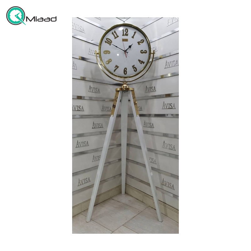 این ساعت ایستاده، دارای سه پایه است که می تواند کنار هر سالن و اتاقی قرار بگیرد. متریال ترکیبی پلاستیک و چوب پایه ها، زیبایی این محصول را بیشتر کرده است. همچنین دارای موتور آرامگرد می باشد. پایه های چوبی ساعت از مقاومت و دوام خاصی برخوردار هستند. صفحه ساعت طراحی بسیار کلاسیکی و مینیمالی دارد.
