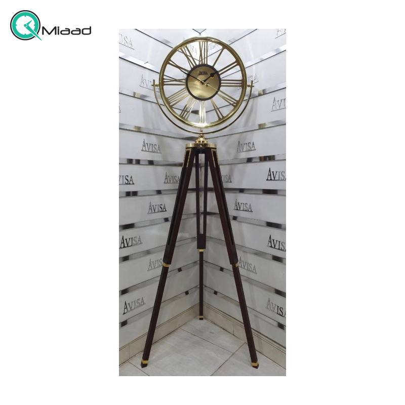ساعت ایستاده آویسا مدل 5، ساعت ایستاده با سه پایه مخصوص، ارتفاع 175 سانتی متر،دارای طراحی خلاقانه صفحه ساعت، متریال چوب، موتور آرامگرد تایوانی، رنگ قهوه ای