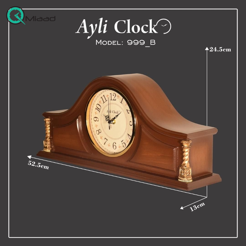 ساعت رومیزی چوبی آیلی مدل 999B جدید ترین ساعت رومیزی موجود شده در وب سایت میعاد تایم می باشد. ساعت های رومیزی برای آن دسته از افرادی که صبح دیر از خواب بیدار می شوند عالی است زیرا بیدار شدن شما از خواب با این ساعت ها حتمی است. ساعت‌های رومیزی نوع دیگری از ساعت‌های دیواری هستند که روی میز استفاده می شوند، اما عموماً نقاط برجسته‌تری نسبت به ساعت‌های دیواری دارند.