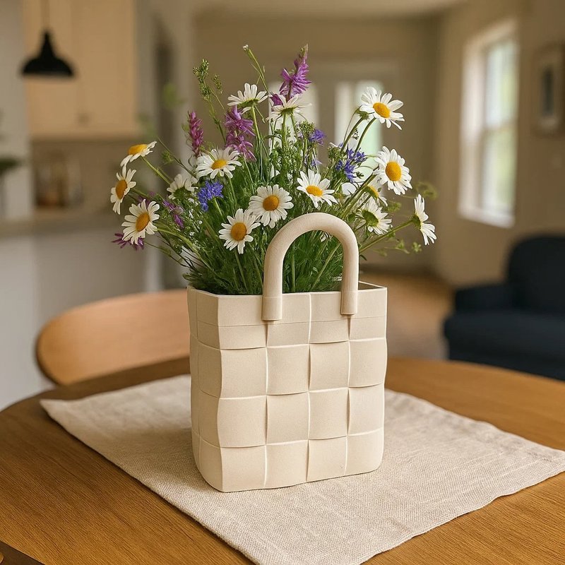 گلدان رزین مدل زنبیل، گلدان شطرنجی خلاقانه و دکوری طرح زنبیل، متریال رزین