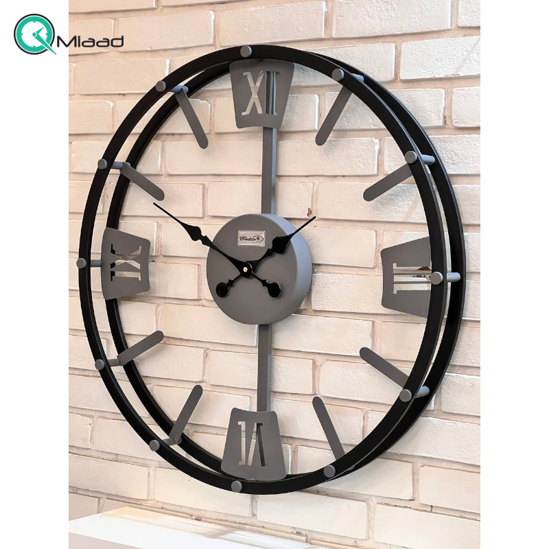 ساعت دیواری بتیس مدل 6717، ساعت دیواری بسیار مدرن با متریال فلز، موتور تایوانی، اعداد لاتین، سایز 68، رنگ مشکی طوسی