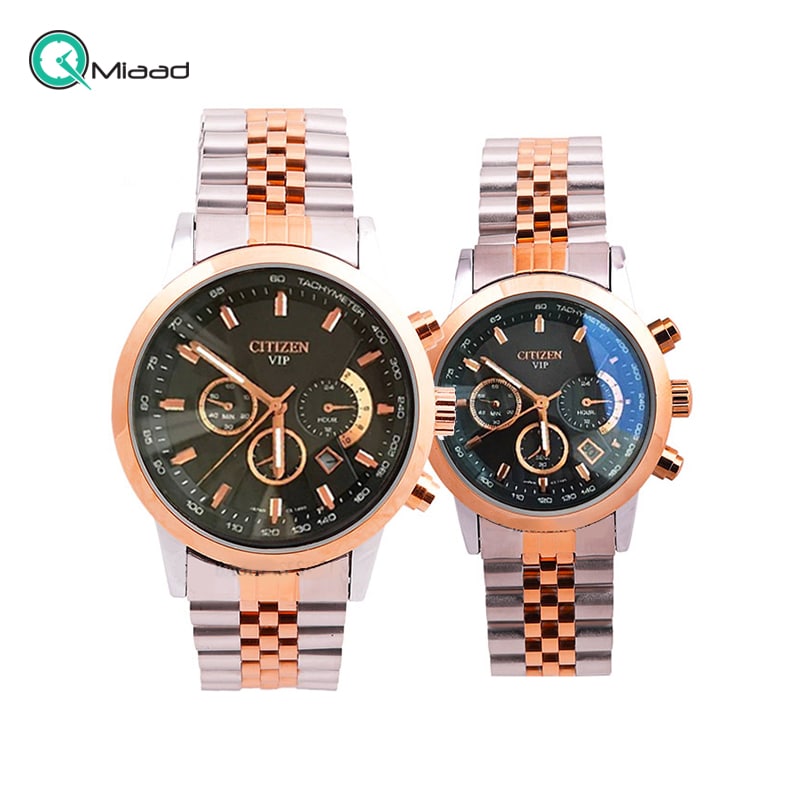 ساعت مچی ست سیتیزن مدل VIP 3371 از سری ساعت های مچی های کپی برند سیتیزن است که از کیفیت ساخت بالایی برخودار است. این مدل ساعت ها برای هدیه دادن به زوج های جوان جهت مناسبت های مختلف و روزهای خاص مثل تولد، سالگرد ازدواج و ... بسیار مناسب است و با توجه به قیمت به مراتب کمتر و اقتصادی، نسبت به مدل اصلی، از کیفیت قابل قبولی برخوردار است و حس داشتن یک ست ساعت مچی شیک و زیبا را برای شما تداعی می کند. در ادامه به تمام ویژگی های آن می پردازیم: