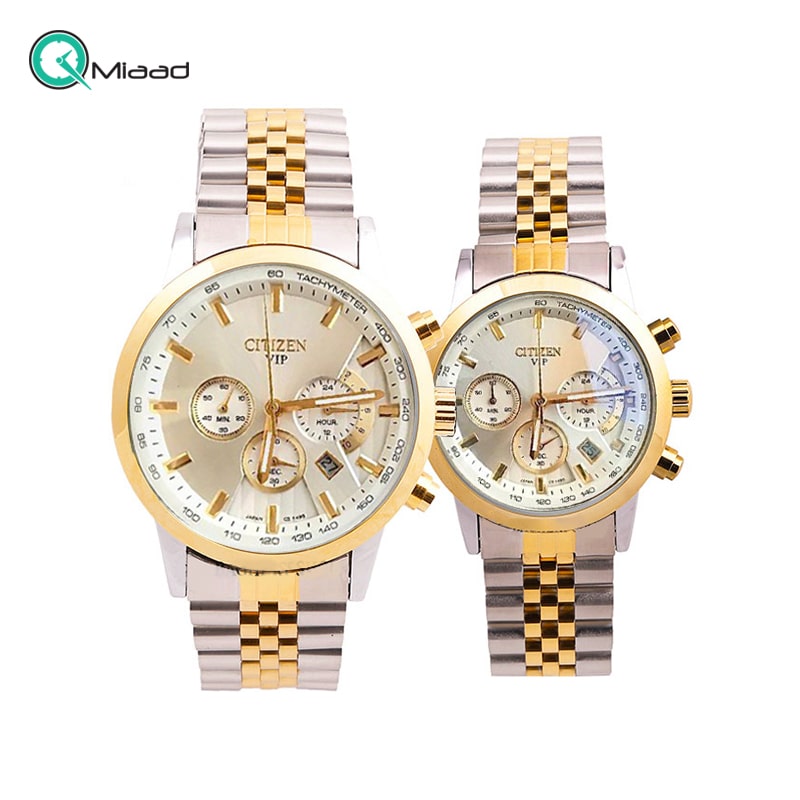 ساعت مچی ست سیتیزن مدل VIP 3373 از سری ساعت های مچی های کپی برند سیتیزن است که از کیفیت ساخت بالایی برخودار است. این مدل ساعت ها برای هدیه دادن به زوج های جوان جهت مناسبت های مختلف و روزهای خاص مثل تولد، سالگرد ازدواج و ... بسیار مناسب است و با توجه به قیمت به مراتب کمتر و اقتصادی، نسبت به مدل اصلی، از کیفیت قابل قبولی برخوردار است و حس داشتن یک ست ساعت مچی شیک و زیبا را برای شما تداعی می کند. در ادامه به تمام ویژگی های آن می پردازیم: