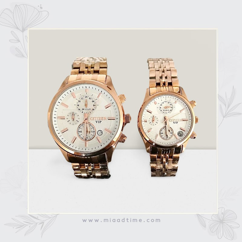 ساعت مچی ست سیتیزن مدل VIP 3374 از سری ساعت های مچی های کپی برند سیتیزن است که از کیفیت ساخت بالایی برخودار است. این مدل ساعت ها برای هدیه دادن به زوج های جوان جهت مناسبت های مختلف و روزهای خاص مثل تولد، سالگرد ازدواج و ... بسیار مناسب است و با توجه به قیمت به مراتب کمتر و اقتصادی، نسبت به مدل اصلی، از کیفیت قابل قبولی برخوردار است و حس داشتن یک ست ساعت مچی شیک و زیبا را برای شما تداعی می کند. در ادامه به تمام ویژگی های آن می پردازیم:
