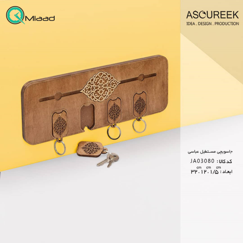 جاسویچی مستطیل مدل عباسی کد JA03080 یکی از سری محصولات جذاب میعاد تایم می باشد که در کالکشن اکسسوری چوبی موجود شده است. جذابیت زیبایی چوب غیرقابل انکار است و محصولات چوبی محبوبیت بسیاری دارد. جا کلیدی به عنوان یک ابزار سازمانی عمل می کند که برای ذخیره ایمن کلیدها و جلوگیری از احتمال گم شدن آنها استفاده می شود.