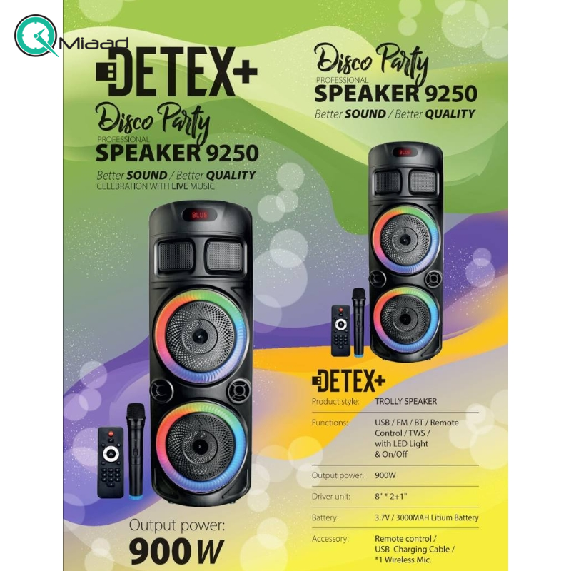 اسپیکر بلوتوث دتکس پلاس 9250 یکی از محصولات جدید موجود شده فروشگاه اینترنتی میعاد تایم می باشد. اسپیکر بلوتوث ابزاری برجسته برای درک موسیقی و صدا هستند. در طیف گسترده ای از دستگاه های الکترونیکی، بلندگوها به عنوان ابزار ضروری عمل می کنند. آنها برخورد شنیداری را در حوزه دیجیتال تقویت می کنند و آنها را به یک منبع گرانبها تبدیل می کنند. علاوه بر این، عالی بودن غیرقابل انکار صدای ارائه شده توسط این بلندگوها غیرقابل انکار است.