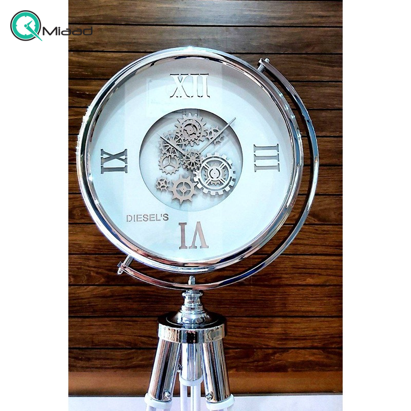 ساعت ایستاده تمام فلزی دیزل S، ساعت ایستاده و سالنی با سه پایه مخصوص، ارتفاع 170 سانتی متر، دارای رنگ بندی و چرخ دنده هایی روی صفحه ساعت، متریال فلز، موتور آرامگرد تایوانی، رنگ سفید سیلور