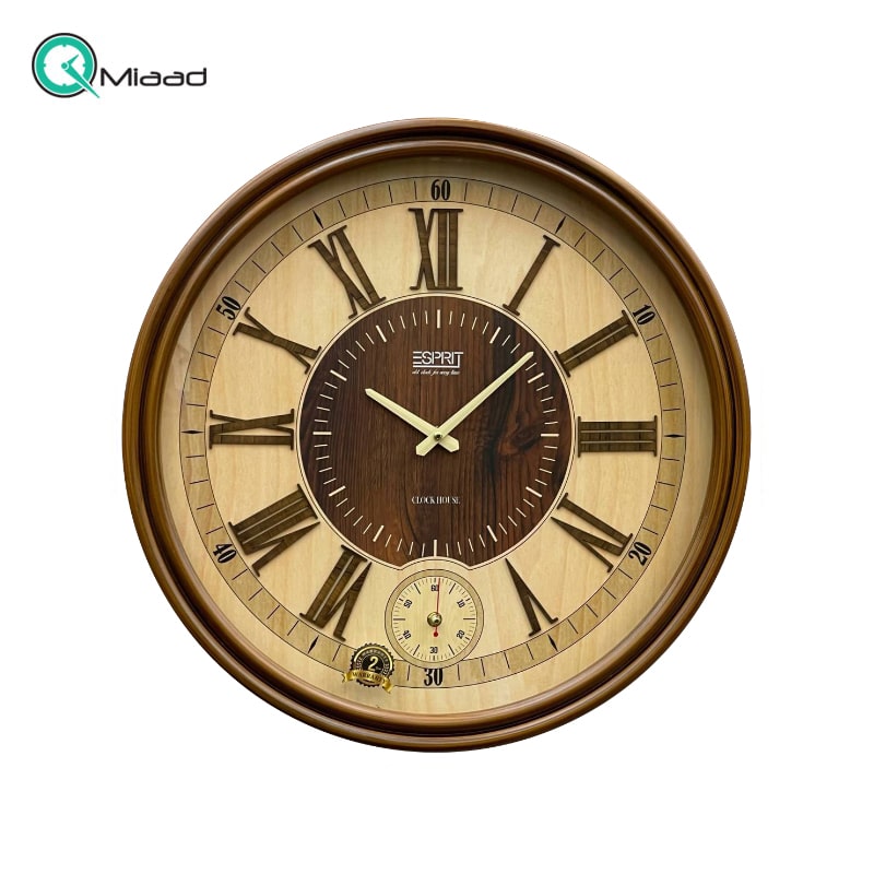 ساعت دیواری چوبی اسپریت مدل 2014 قهوهای، ساعت دیواری با متریال چوب، دارای موتور آرامگرد تایوانی و اعداد برجسته یونانی، ساخت ایران