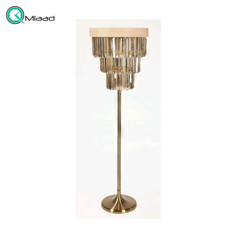 آباژور سالنی مدل 109، آباژور ایستاده با پایه آهنی، دارای 3 سرپیچ و 115 عدد آویز، همچنین قابل سفارش در دو مدل آویز دار و بدون آویز، متریال طلق و آهن کلاهک، دارای تنوع رنگ بندی، رنگ طلایی