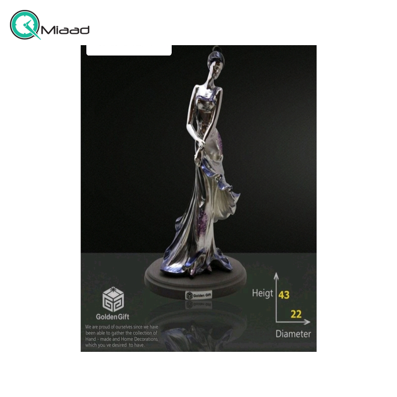 مجسمه آبکاری شده طرح بانوی خوش لباس کد 409 یکی از سری محصولات تزیینی کالکشن مجسمه میعاد تایم می باشد. این محصول یک مجسمه با طرح دختر ایستاده با لباس مجلسی و طراحی آبکاری شده است. همچنین از پلی رزین ساخته شده است و دارای پایه چوبی میباشد. یکی دیگر از مزایا این مجسمه این مورد است که دارای گارانتی اصالت و سلامت فیزیکی است. اگر قصد زیبا تر کردن هر سطح و میز خالی را دارید، این مجسمه می تواند انتخاب بسیار مناسبی باشد.