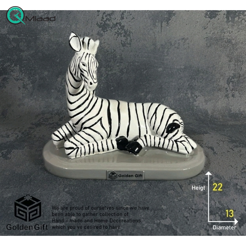 مجسمه طرح گورخر نشسته کد 472 یکی از سری محصولات تزیینی کالکشن مجسمه میعاد تایم می باشد. این محصول یک مجسمه با طرح گورخر زیبا و طراحی آبکاری شده است. همچنین از پلی رزین ساخته شده است و دارای پایه چوبی میباشد. یکی دیگر از مزایا این مجسمه این مورد است که دارای گارانتی اصالت و سلامت فیزیکی است. اگر قصد زیبا تر کردن هر سطح و میز خالی را دارید، این مجسمه می تواند انتخاب بسیار مناسبی باشد.