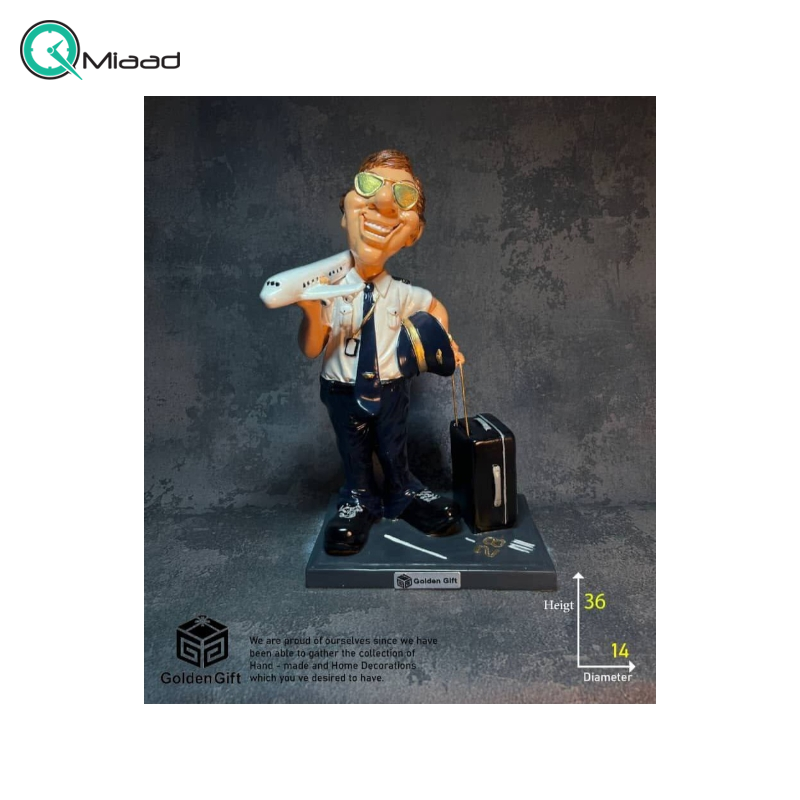 مجسمه طرح خلبان کد 481 یکی از سری محصولات تزیینی کالکشن مجسمه میعاد تایم می باشد. این محصول کالکشن 2 تکه طرح خلبان در پوزیشن های مختلف می باشد. این مجسمه از پلی رزین ساخته شده است و دارای پایه چوبی میباشد. همچنین دارای گارانتی اصالت و سلامت فیزیکی است. اگر قصد زیبا تر کردن هر سطح و میز خالی را دارید، این مجسمه می تواند انتخاب بسیار مناسبی باشد.