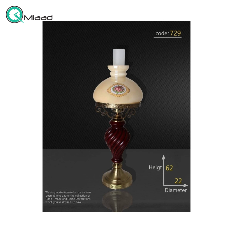 آباژور رومیزی چوبی طرح گردسوز مدل 729 با سبک طراحی کلاسیک و زیبا جلوه متفاوت و جذابی به دکور منزل شما می دهد. جنس شید این آباژور رومیزی از شیشه و جنس بدنه آن چوبی است که کیفیت و دوام بالایی دارد. این مدل آباژور ها را با توجه به ترکیب رنگی که دارند می توانید با سایر وسایل منزل ست کرده و زیبایی دکور فضای داخلی خود را دوچندان کنید. ما در فروشگاه میعادتایم این محصولات را با ضمانت سلامت و اصالت در اختیار شما عزیزان قرار می دهیم.