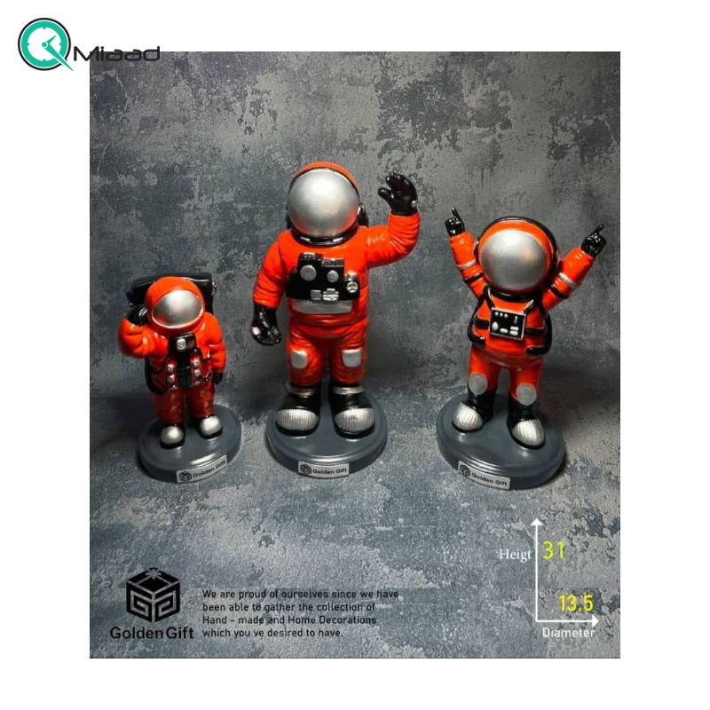 مجسمه سه تکه طرح فضانورد کد 475 رنگ قرمز یکی از سری محصولات تزیینی کالکشن مجسمه میعاد تایم می باشد. این محصول کالکشن 5 تکه طرح فضانورد در پوزیشن های مختلف می باشد. این مجسمه از پلی رزین ساخته شده است و دارای پایه چوبی میباشد. همچنین دارای گارانتی اصالت و سلامت فیزیکی است. اگر قصد زیبا تر کردن هر سطح و میز خالی را دارید، این مجسمه می تواند انتخاب بسیار مناسبی باشد. مدل 5 تکه همین مجسمه هم از قسمت مجسمه پنج تکه طرح فضانورد کد 474 برای شما در دسترس است.