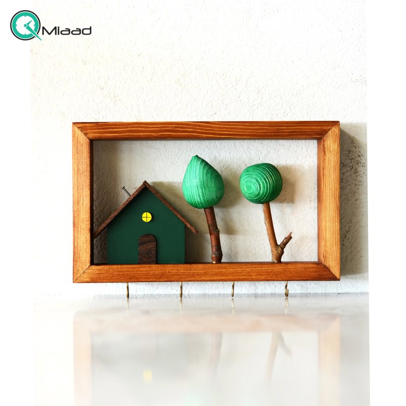 جاکلیدی دست ساز طرح کلبه و درخت با رنگ سبز تیره یکی از سری محصولات جذاب میعاد تایم می باشد که در کالکشن اکسسوری چوبی موجود شده است. جذابیت زیبایی چوب غیرقابل انکار است و محصولات چوبی محبوبیت بسیاری دارد. جا کلیدی به عنوان یک ابزار سازمانی عمل می کند که برای ذخیره ایمن کلیدها و جلوگیری از احتمال گم شدن آنها استفاده می شود.