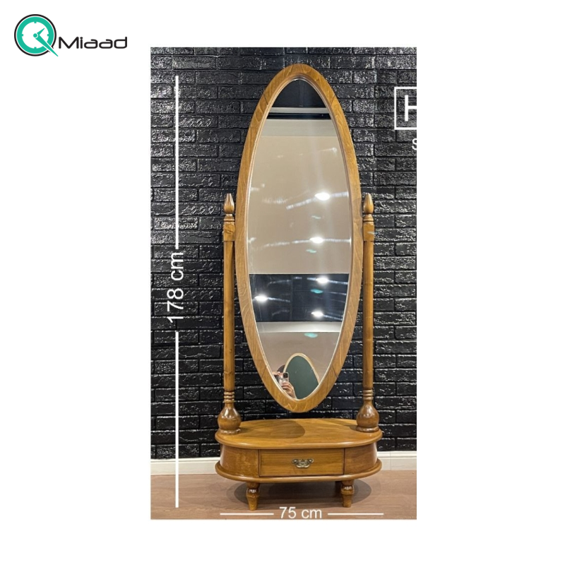 آینه کشو دار ایستاده با قاب چوبی، آینه درجه یک با متریال تمام چوب