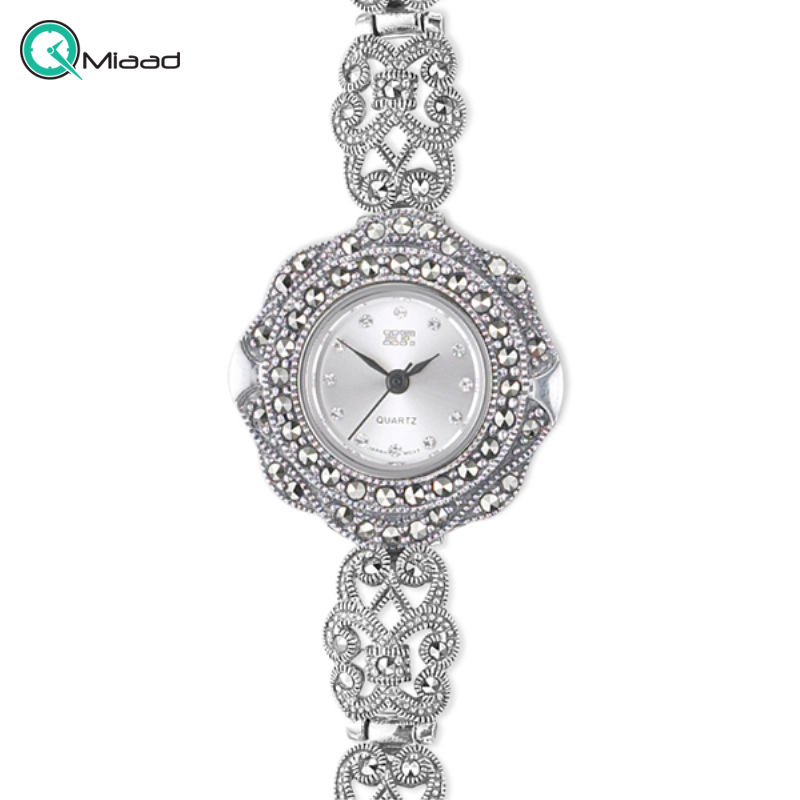نقره 925 با آبکاری طلا سفید، تقویم دار موتور ژاپنی، با نگین های مارکازیت سوییسی | وزن : 29.00