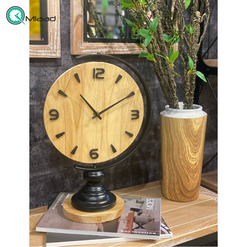 ساعت رومیزی دکوراتیو وارداتی مدل G، ساعت رومیزی دایره ای با ترکیب چوب و فلز، طراحی فانتزی و مینیمال، موتور آرامگرد و 2 سال ضمانت