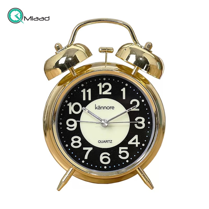 ساعت رومیزی کانور، ساعت رومیزی فلزی دکوری زنگدار زنگولهای قطر 10 سانت، ساعت رومیزی زنگدار بیصدا سبک قدیمی، ساعت رومیزی شبنما چراغدار | مدل K-6409