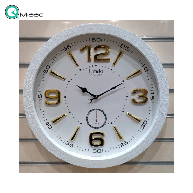 ساعت دیواری لیندو مدل 304 رنگ سفید از سری ساعت دیواری های جدید میعاد تایم می باشد.
