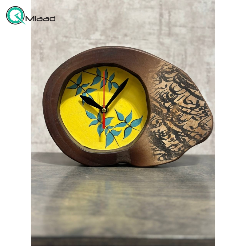 ساعت رومیزی چوبی دست ساز لوتوس مدل 350 صفحه زرد سبز