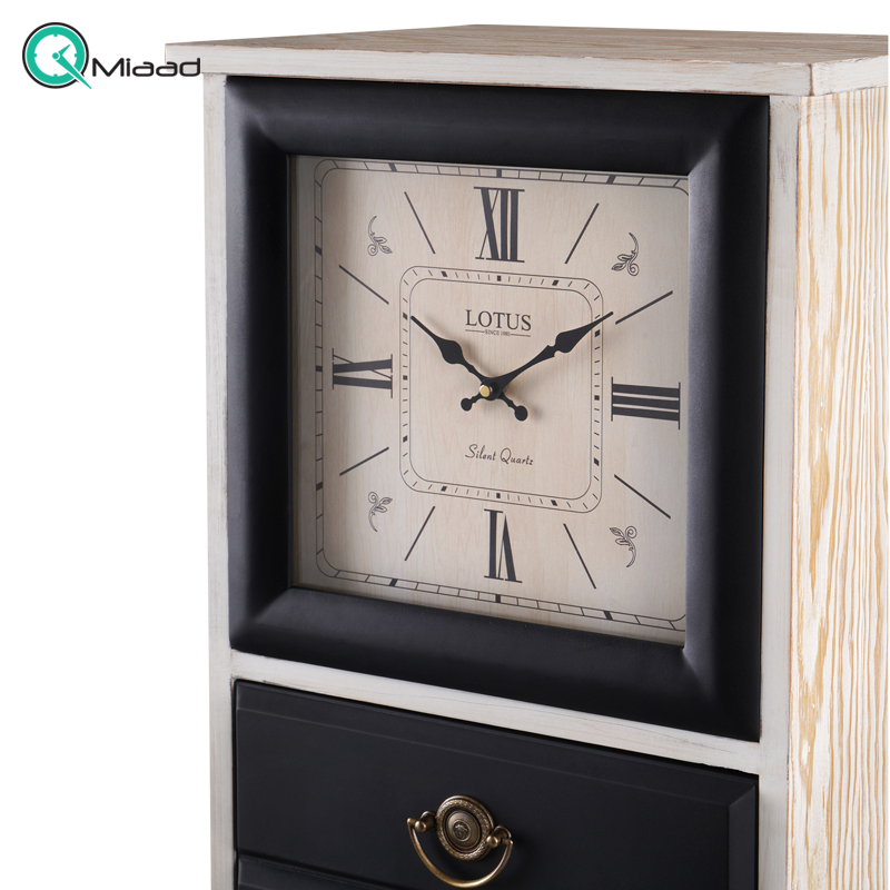 ساعت ایستاده چوبی لوتوس کد DC-81، ساعت سالنی لوتوس با سه کشو جادار، ساعت ایستاده دکوری شیک با موتور تایوانی، رنگ مشکی وایت واش