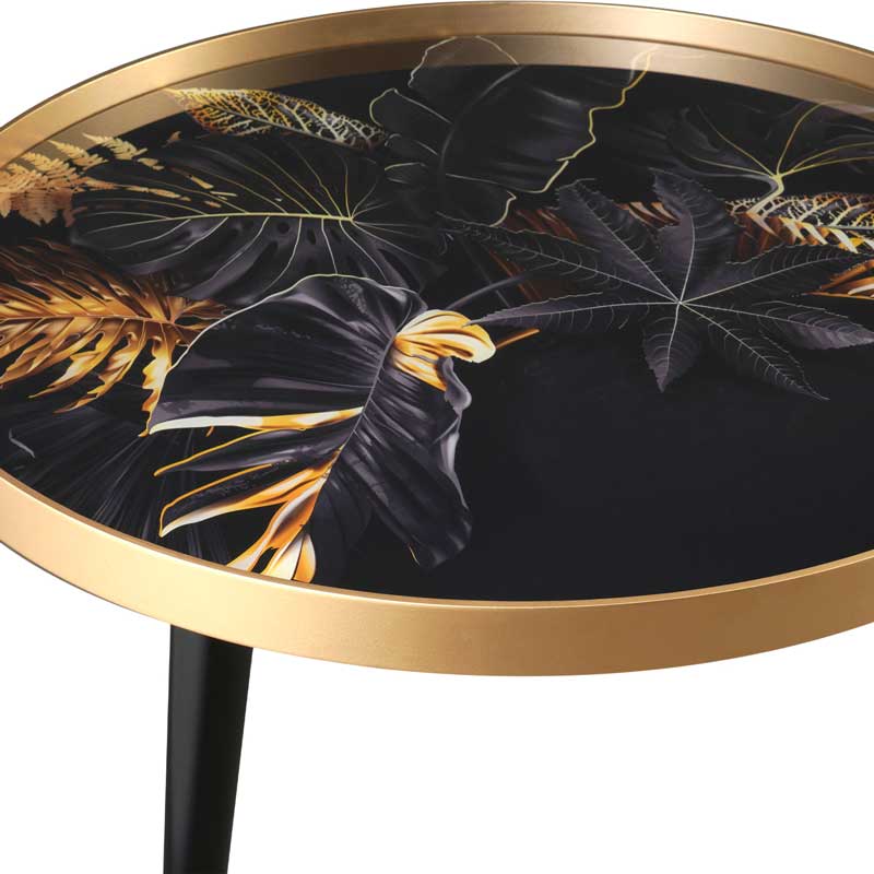 میز جلو مبلی ALMA مدل TRENTO با طرح زیبای ترنتو که چاپ زیبا و با کیفیت طرح برگ هایی با رنگ مشکی و طلایی روی سینی از جنس چوب با رنگ طلایی و پایه های پیچی مشکی، هارمونی رنگی شیک و زیبایی دارد و دکور منزل و یا محیط کاری شما رو زیبا تر می کند. طرح این مدل میز جلو مبلی شیک همان طرح بکار رفته در میز عسلی و سینی طرح ترنتو است که به راحتی بتوانید آن ها را با هم ست کنید و به صورت ست میزعسلی و میز جلو مبلی و سینی طرح ترنتو در اختیار شما عزیزان قرار می گیرد. این مدل میزهای جلو مبلی جدید دارای پایه های پیچی هستند که به راحتی قابل نصب می باشند و همین موضوع باعث می شود حجم بسته بندی کوچک و براحتی قابل حمل و نقل باشد. شیشه روی میز نیز متحرک طراحی شده است و براحتی قابل تمیز کردن است. نگران خدمات پس از فروش این میزهای جلو مبلی نیز نباشید چرا که در صورت شکسته شدن شیشه می توانید شیشه مورد نظر را تهیه و جایگزین نمایید.