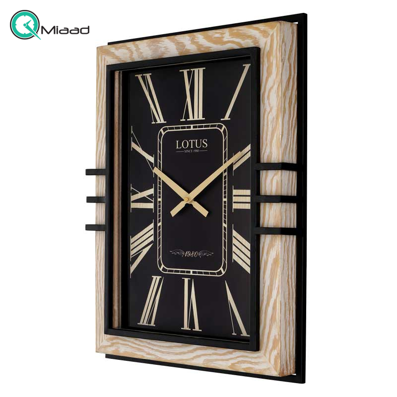 ساعت چوبی آندره جدیدترین ساعت مستطیل لوتوس با ترکیب چوب و فلز است. بدنه ساعت تمام چوب راش است. دو فریم فلزی به رنگ مشکی مات موجود در داخل و بیرون فریم چوبی قاب ساعت چوبی آندره مدرن را متفاوت کرده است. همچنین، طراحی صفحه ساعت چوبی آندره مدرن با کل ساعت هارمونی دارد. عقربه ها و اعداد یونانی کرم در بک گراند مشکی، صفحه ساعت چوبی آندره مدرن را خوانا و برجسته کرده است. رنگ زیبای پتینه وایت واش در بدنه چوبی ساعت در ترکیب با رنگ مشکی فلز، جذابیت بصری ساعت دیواری چوبی آندره را افزایش داده است.