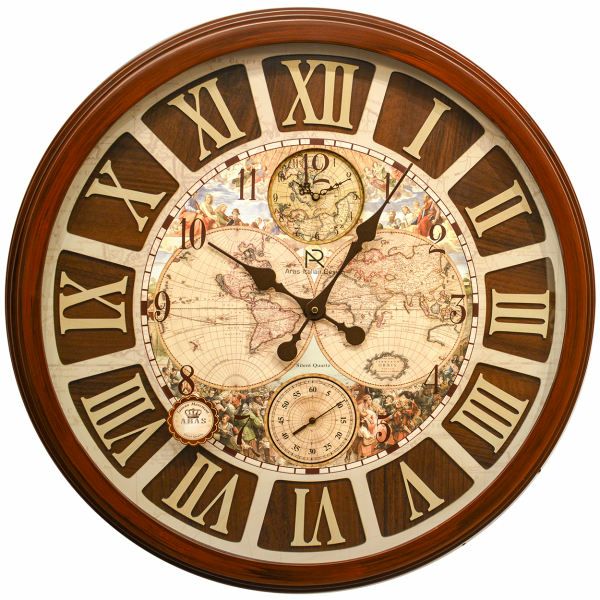بدنه از جنس چوب، دارای اعداد و عقربه های بزرگ برای خوانایی بیشتر، استفاده از طیف رنگی مناسب، دارای سه موتور آرام گرد تایوانی