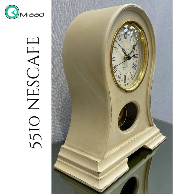 ساعت رومیزی چوبی لوتوس مدل 5510، ساعت رومیزی پاندولدار بیصدا، ساعت رومیزی دکوری طرح قدیمی، دکوراسیون اتاق نشیمن، دفتر کار و آشپزخانه، رنگ نسکافه ای