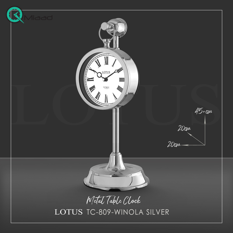 ساعت رومیزی فلزی لوتوس مدل 809 رنگ نقره ای جدید ترین ساعت رومیزی فلزی تولیدی شرکت لوتوس است. ساعت های رومیزی وسیله ای شیک برای نظارت بر گذر زمان هستند. علیرغم تمایل ما به نگاهی گذرا به گوشیهای هوشمندمان، ساعتهای رومیزی این توانایی را دارند که حس احساسات و اهمیت را در این عصر فناوری پیشرفته برانگیزند. با استفاده از یک ساعت رومیزی، نه تنها جذابیت زیبایی شناسی فضای خود را افزایش می دهید، خواه محیطی معمولی یا امروزی باشد، بلکه از مزایای بیشتری نیز برخوردار می شود.