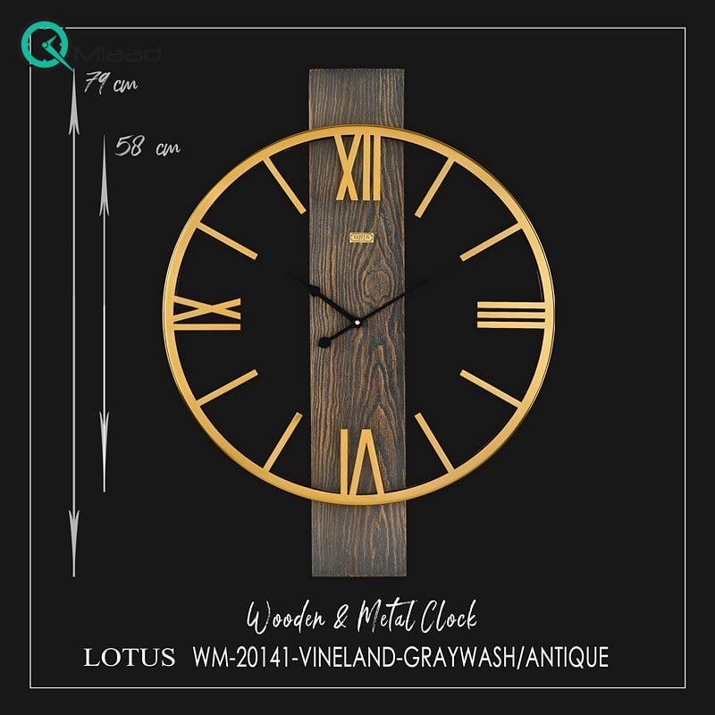 ساعت دیواری چوبی و فلزی لوتوس مدل 20141