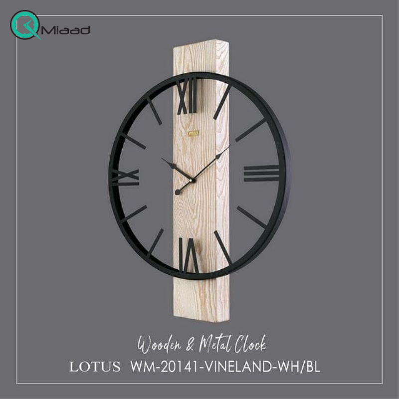 ساعت دیواری چوبی و فلزی لوتوس مدل 20141