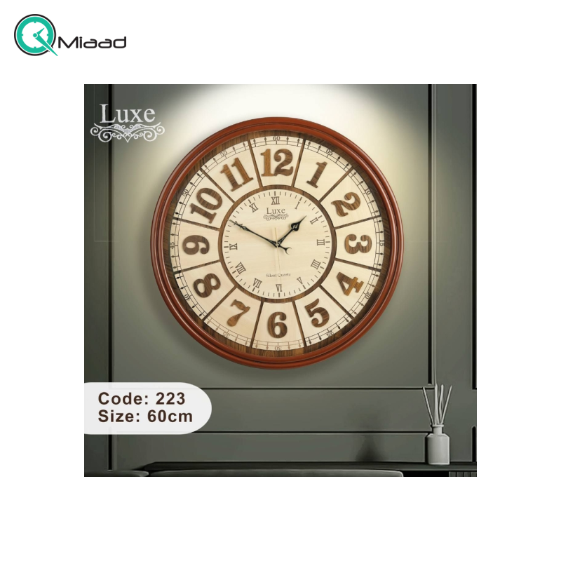 با قطر باشکوه 60 سانت، این ساعت به محض ورود به هر فضایی، تمام توجهها را به خود جلب میکند. این مدل یک انتخاب ایدهآل برای دیوارهای اصلی پذیرایی، فضاهای لابی مجلل یا دفاتر مدیریتی است که به دنبال ایجاد حسی از وقار و اصالت هستند. این شاهکار در سه ترکیب رنگی زیبا ارائه میشود: