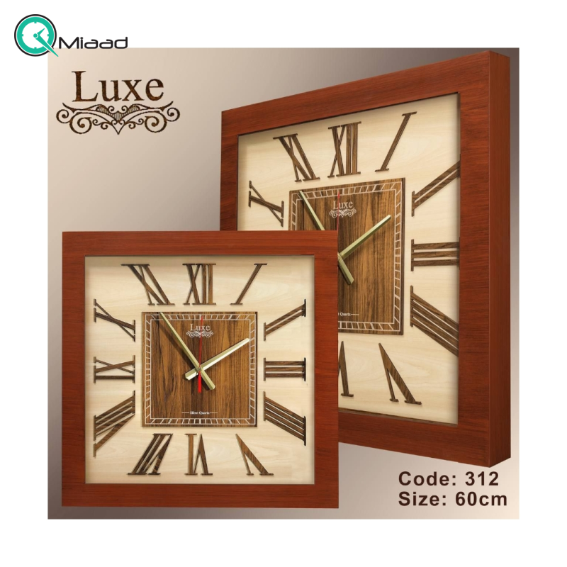 ساعت دیواری چوبی لوکس مدل 312، ساعت دیواری مربعی، زیبایی در سادگی و اصالت، سایز بزرگ 60 سانت در سه مدل کلاسیک و چشمنواز