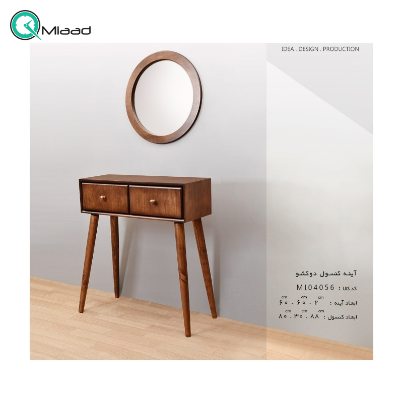 آینه و کنسول چوبی دو کشو کد MI04055 یکی از محصولات جدید فروشگاه اینترنتی میعاد تایم می باشد که در طیف محصولات در دسته میز موجود شده است. میزهای کنسول و آینه ها به شکلی شیک و مجلل تولید می شوند که به شما این امکان را می دهد تا با کمک میز کنسول و آینه مناسب، طراحی داخلی منزل خود را زیباتر کنید. در گذشته از میزهای کنسول برای نگهداری اسناد و اقلام ارزشمند استفاده می شد. امروزه از آینه و کنسول برای ایجاد تغییر مثبت در طراحی داخلی خانه استفاده می شود.