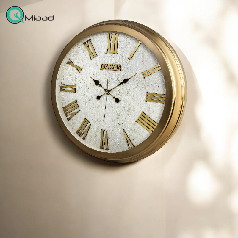 ساعت دیواری فلزی نارسیس مدل 001 رنگ طلایی سفید از سری محصولات ساعت دیواری مدرن فروشگاه اینترنتی میعاد تایم می باشد.