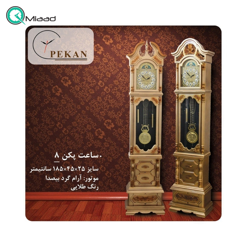 ساعت ایستاده و کنارسالنی پکن مدل 8 رنگ طلایی یکی از مدل های پرطرفدار موجود در بازار است که با متریال پلاستیک طرح چوب، درب شیشه ای، زیبایی این مدل دوچندان شده است. طراحی زیبای بدنه و صفحه این مدل ساعت نگاه هر بیننده ای را در مرتبه اول به خود جلب می کند و فضای دکور منزل و یا محل کار شما را به کلی تغییر می دهد. موتور ساعت آرام گرد و تایوانی است.