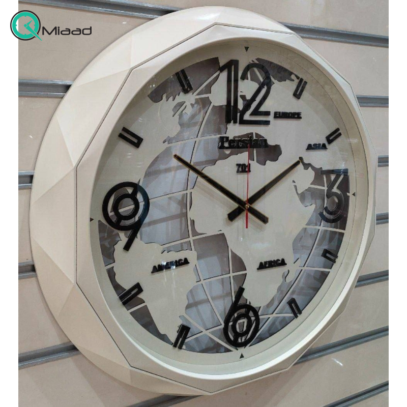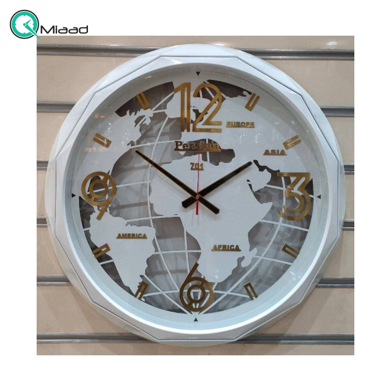 ساعت دیواری جهان نما پرشین مدل 701 رنگ سفید از سری ساعت دیواری های جدید میعاد تایم می باشد.