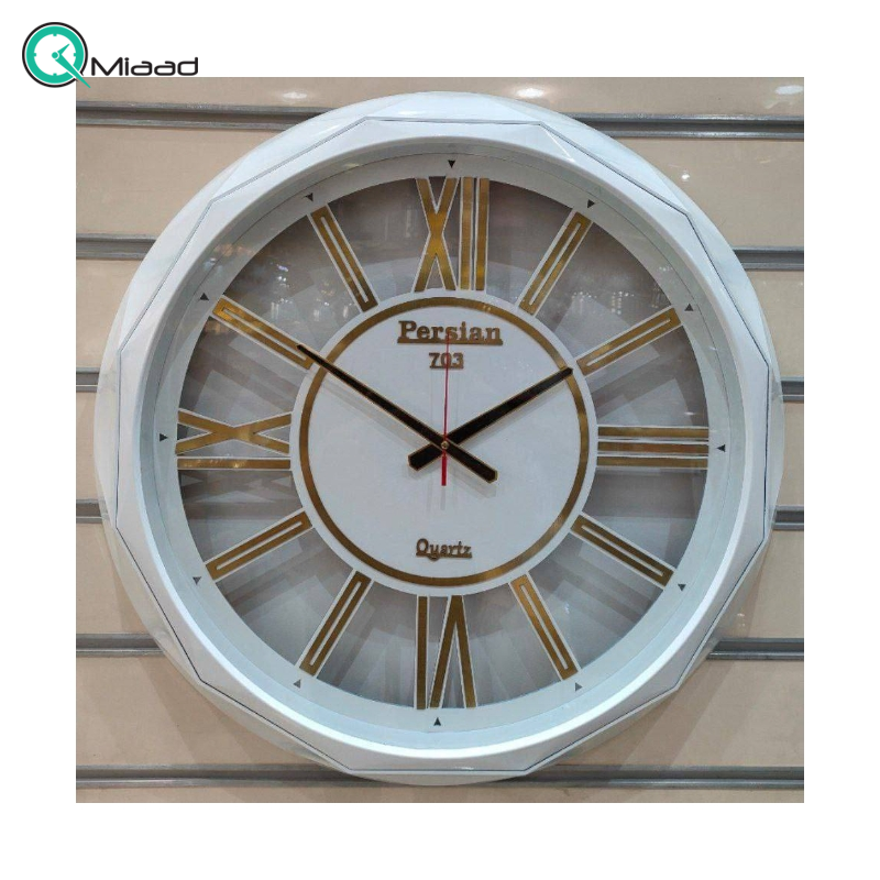 ساعت دیواری پرشین مدل 703 رنگ سفید از سری ساعت دیواری های جدید میعاد تایم می باشد.