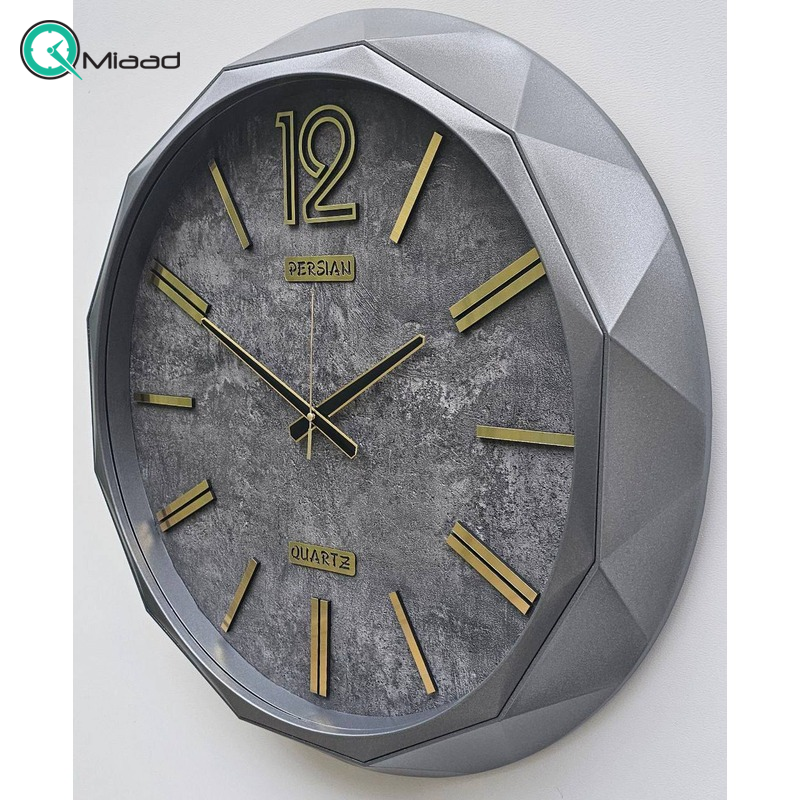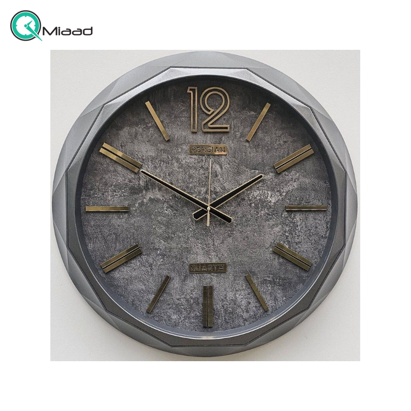 ساعت دیواری صفحه چوب پرشین مدل 704 رنگ تیتانیوم از سری ساعت دیواری های جدید میعاد تایم می باشد.