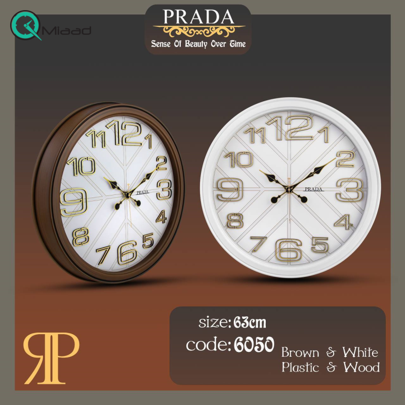 ساعت دیواری پرادا مدل 6050 رنگ قهوه ای ساعت دیواری فروشگاه میعاد تایم می باشد.