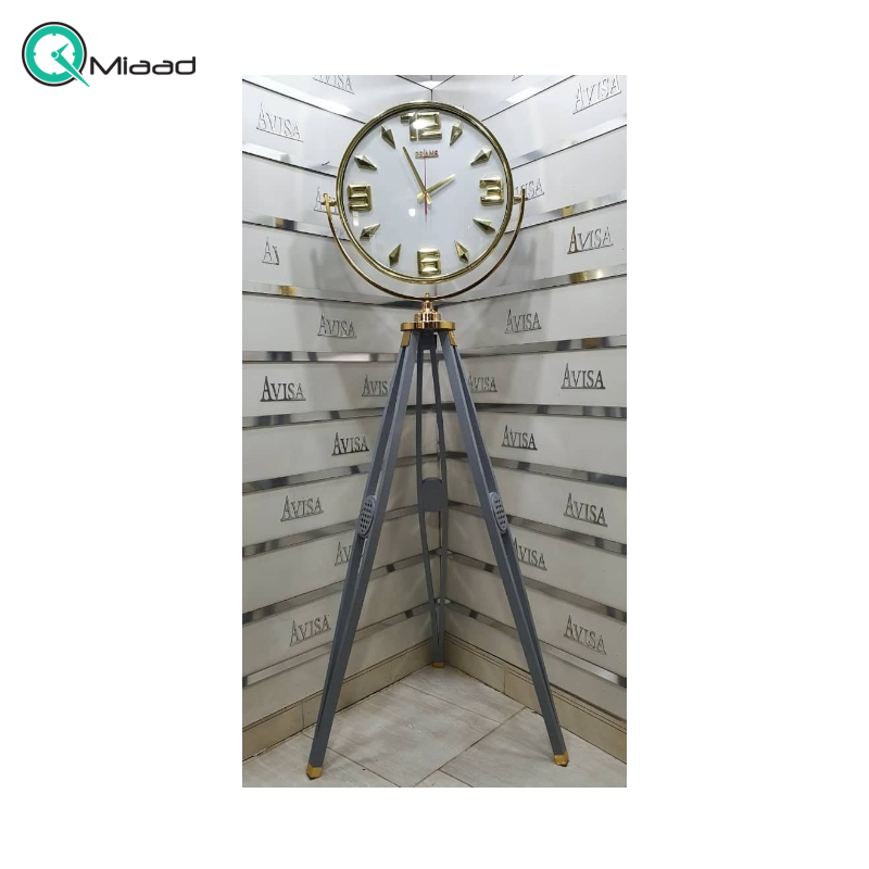 این ساعت ایستاده، دارای سه پایه است که می تواند کنار هر سالن و اتاقی قرار بگیرد. متریال چوبی، زیبایی این محصول را بیشتر کرده است. همچنین دارای موتور آرامگرد می باشد. پایه های چوبی ساعت از مقاومت و دوام خاصی برخوردار هستند. صفحه ساعت سفید رنگ می باشد و اعداد آبکاری شده طلایی رنگ لاتین که به صورت برجسته روی صفحه نقش بسته اند، زیبایی این ساعت را چشمگیر تر کرده است.