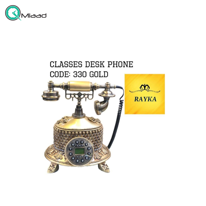 تلفن سلطنتی رومیزی رایکا مدل 330 رنگ طلایی هم یکی از سری محصولات در دسته تلفن کلاسیک میعاد تایم می باشد. امروزه بسیاری از افرادی که می خواهند ظاهر خانه یا محل کار خود را تغییر دهند از گوشی های تزئینی استفاده می کنند. گوشی های رویال یا سلطنتی و کلاسیک را می توان به دو گروه رومیزی و گوشی های ایستاده تقسیم کرد. هر بار که این گوشی قدیمی و سنتی را برمی دارید، حس خوبی به شما دست می دهد.